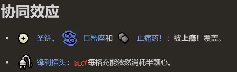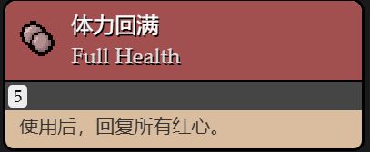 使用後,在當前房間中受到的傷害變爲一整顆心