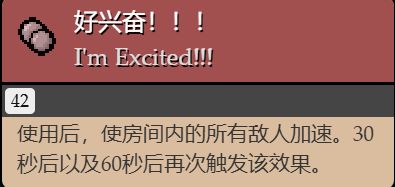 使用後,使所有當前房間內的所有敵人加速,直到離開房間,在30秒後及60秒後,會再次觸發該效果(放的壞藥丸有兩個原因,第一是他在拿了phd以後會變成好睏,第二,要是在喫了這個藥丸後,會更容易受傷)(以撒交流羣羣友交流得出的)