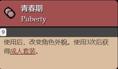 喫下去之後會改變角色外貌,並且喫下三次之後獲得成人套裝(套裝效果:改變角色外貌,並且心之容器+1)