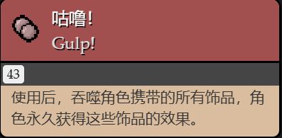 使用後,會將角色攜帶的飾品吞下,並永久獲得這個飾品的效果