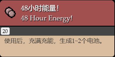 (大膠囊版本:爲你的六充能以上的主動道具充滿充能,並且隨機生成3到4個電池)