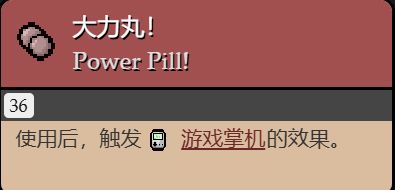 (大膠囊版本:大力丸會額外觸發卡牌變巨術的效果。而感覺像漫步在陽光下,會額外獲得遊戲掌機的使用效果)