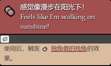 (大力丸使用後會使角色在觸碰到敵人,並擊殺兩個敵人後回覆半格血量;感覺像漫步在陽光下,則是單純的無敵,不會造成傷害效果)