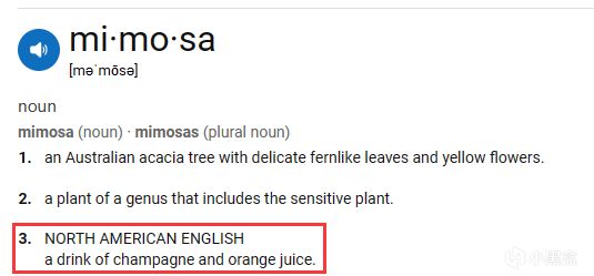 Mimosa是一種以香檳爲基酒的雞尾酒,被喻爲世上最美味、最豪華的柳橙汁。上流社會的人們原本稱它爲蘭休香檳,但因爲它的色澤和鮮黃色的含羞草非常相似,所以取名爲含羞草。在意大利,它的別名叫BacksFizz。