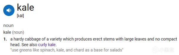 Kale的名字對應的是羽衣甘藍,一種二年生草本花卉。羽衣甘藍具有一定的食用價值,它的鈣、鐵、鉀含量都很高,其嫩葉可炒食、涼拌、做湯,在歐美多用其配上各色蔬菜製成色拉。羽衣甘藍可連續剝取葉片,並不斷產生新嫩葉,且烹調後能保持鮮美的顏色。