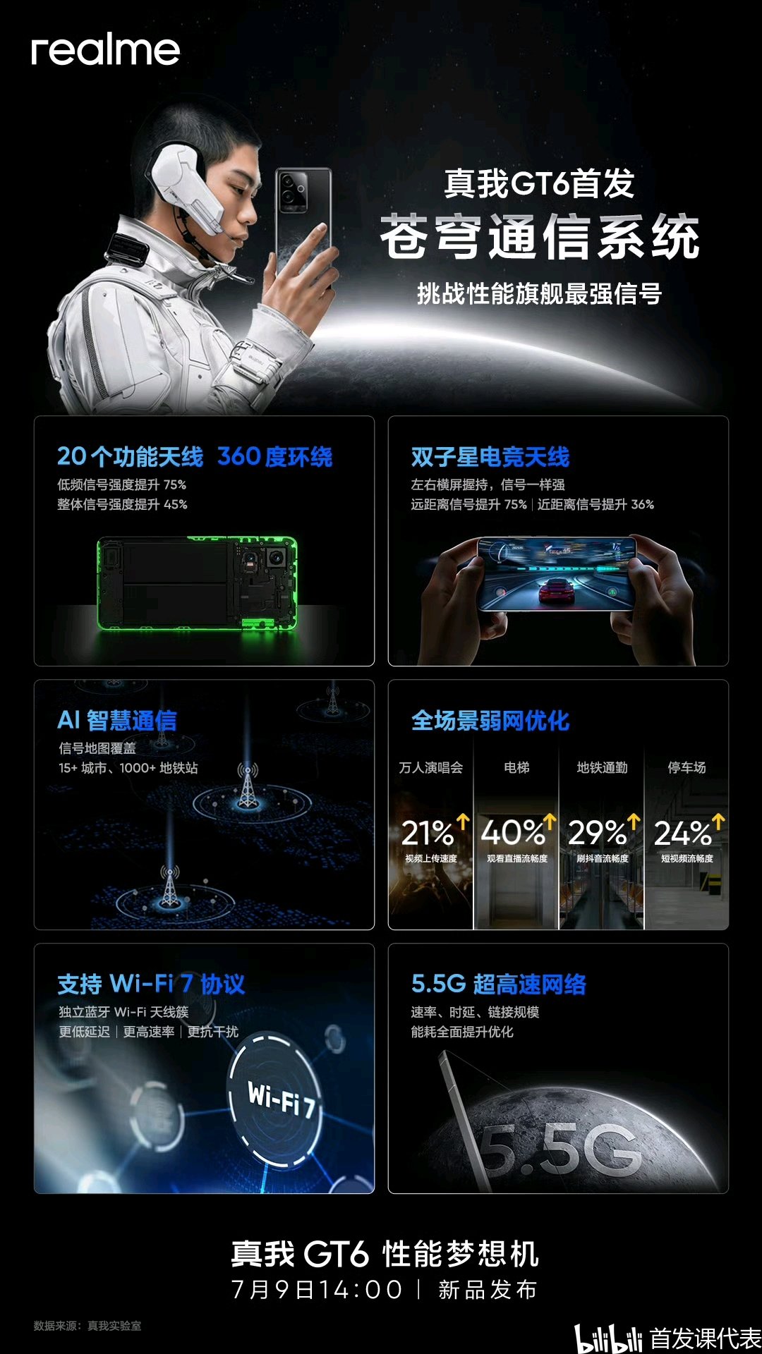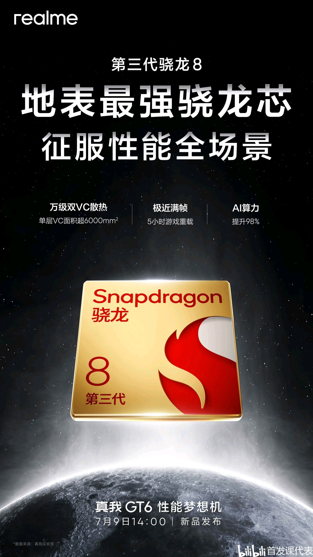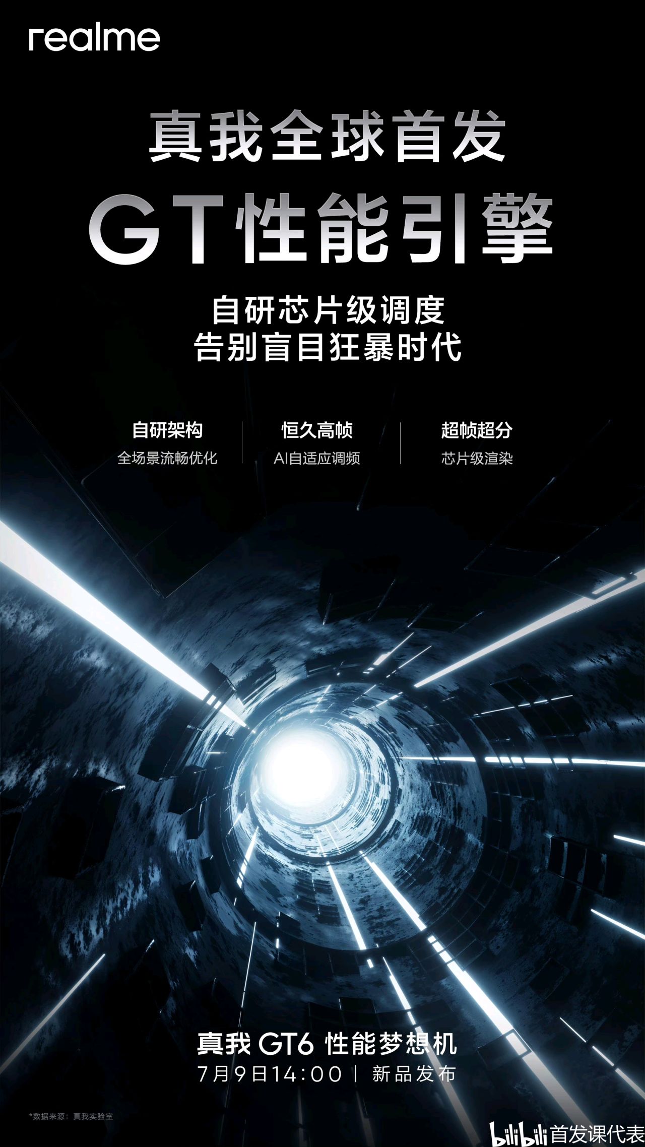 7 月 2 日消息,realme 真我 GT6 官宣,將於 7 月 9 日發佈。