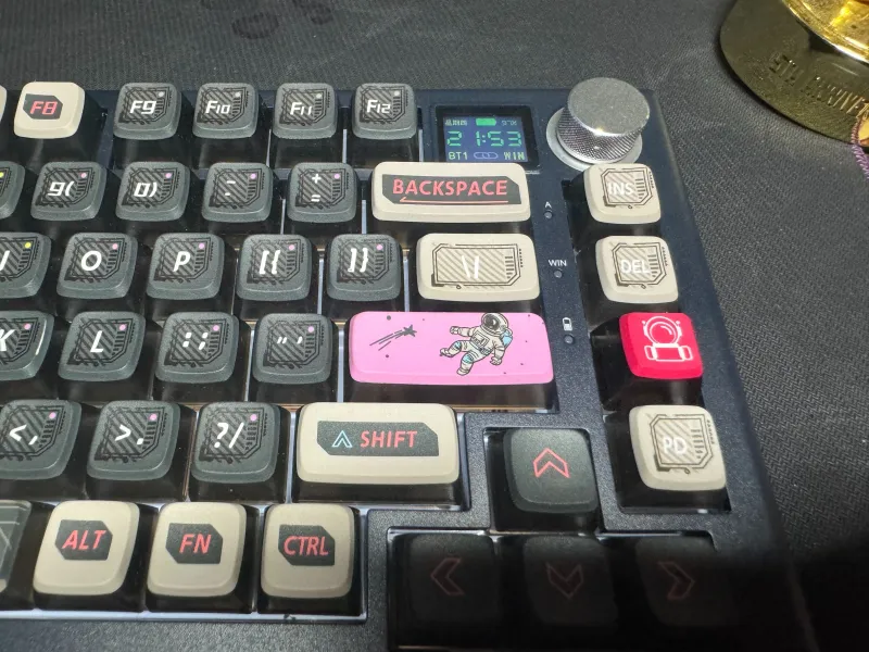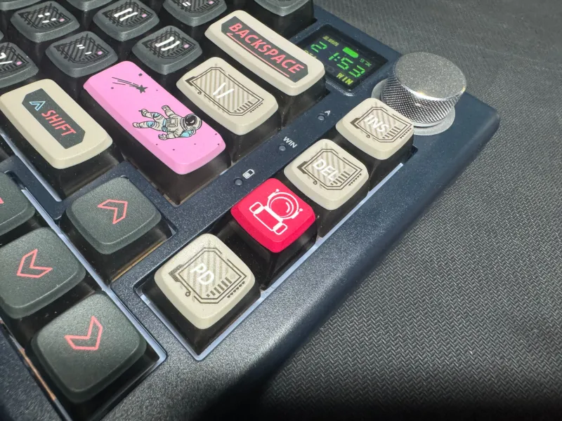 大鍵的圖案也是別有一番風格,跟普通鍵帽的設計不同,會具有科技感的字符,圖案包括航天員與宇宙的圖案,都是點睛之筆。