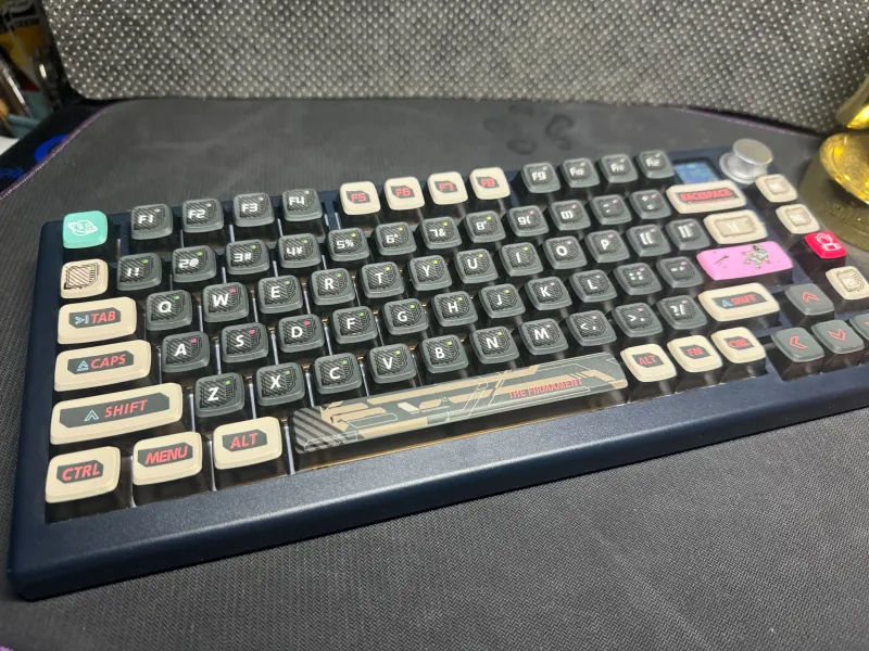 我選擇的配色是科技黑,又略微帶有點藍色的感覺。我覺得這個配色還不錯,黑色配合高顏值的鍵帽有種交相呼應的感覺,未來科技機甲風溢於言表。