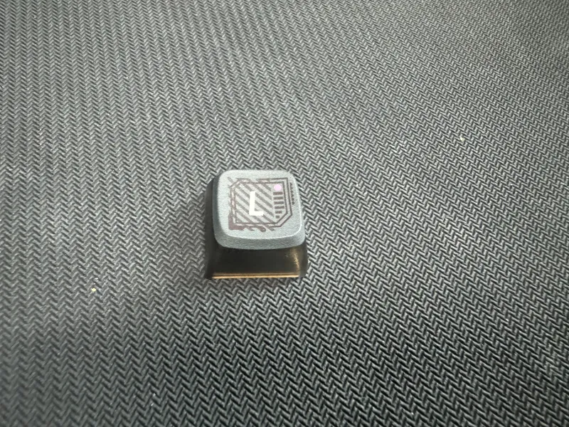 鍵帽表面手感是比較乾爽的那類,內部帶有磨砂的灰色。除了正表面的熱昇華工藝字符和圖案,鍵帽四面透光,既保證了顏值也讓光線穿過。