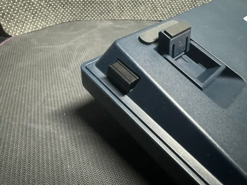 鍵盤側面有一個內收設計,讓玩家拿起來比較容易和順手。還有一個2.4G的收納的開關,開關的磁吸的,不用擔心會掉出來的問題。