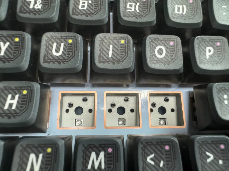 下燈位的設計,和灰木軸的導光性,讓鍵盤光線更加明亮。即使鍵帽正面是光線不穿過的,光線從四面八方照進來比較酷炫,不過就是晚上的時候由於不是正面光,難找相應鍵帽。