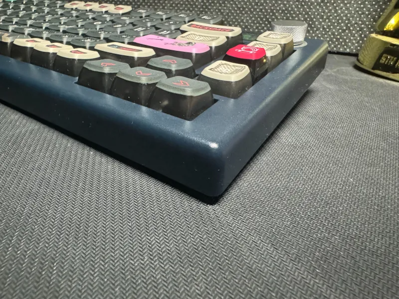 鍵盤結構是gasket結構81鍵,一段業態硅膠墊片+業態硅膠夾心棉+底部液態硅膠填充,三層硅膠消除噪音,所以鍵盤的噪音控制還是比較優秀的。pcb也是兼容三軸五腳軸體,讓鍵盤客製化更加方便。