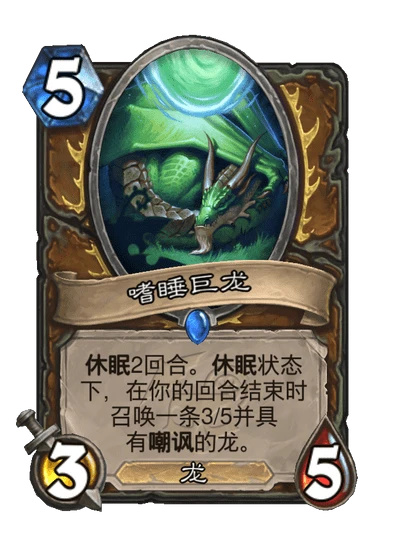 5費3/5,休眠2回合。休眠狀態下,在你的回合結束時召喚一條3/5並具有嘲諷的龍。