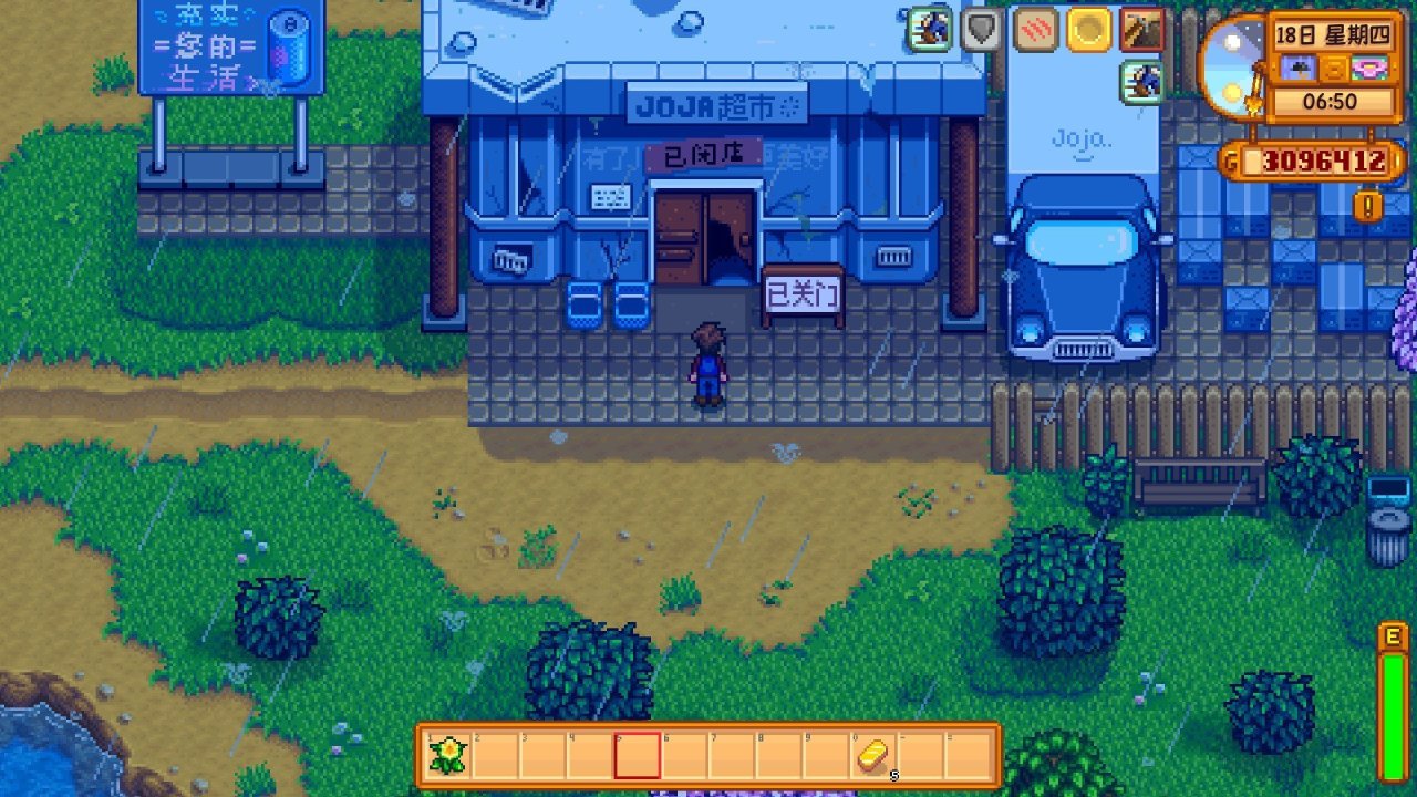 完成社區中心修復後,如果天氣預告說第二天是下雨天,那麼當晚睡覺時就會觸發一個劇情動畫,一道閃電會劈向廢棄的joja超市,會劈開一道口子