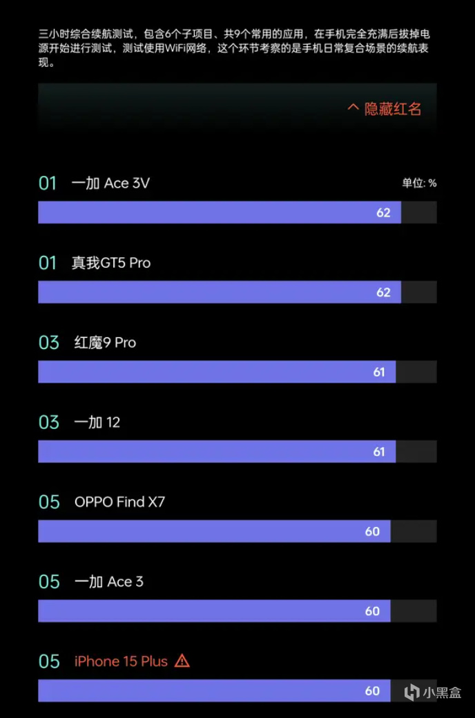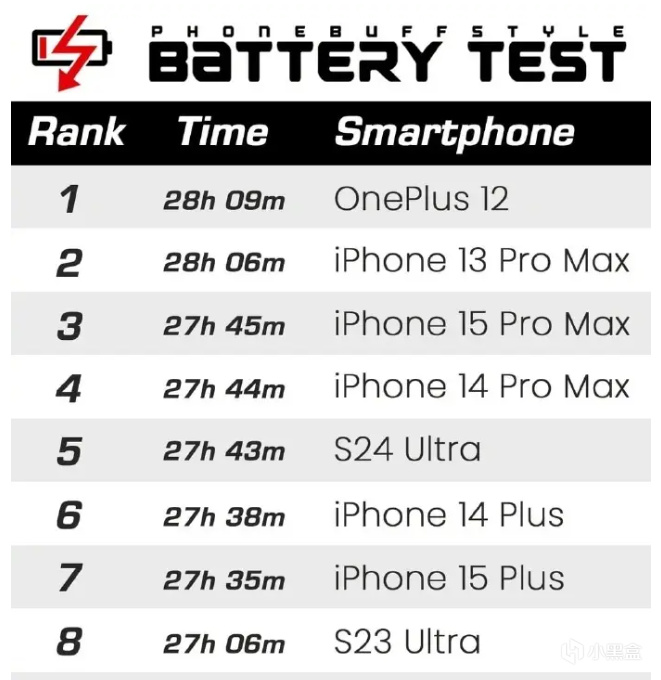 海外媒體做的續航排名榜,從榜單可以看出奪冠的是一加12,整體續航達到28小時09分。
