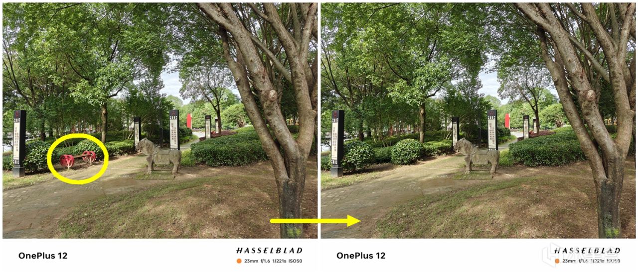 對於圖片,一加12的AI還可以對照片裏的多餘內容進行“消除”,得到更好看的畫面。