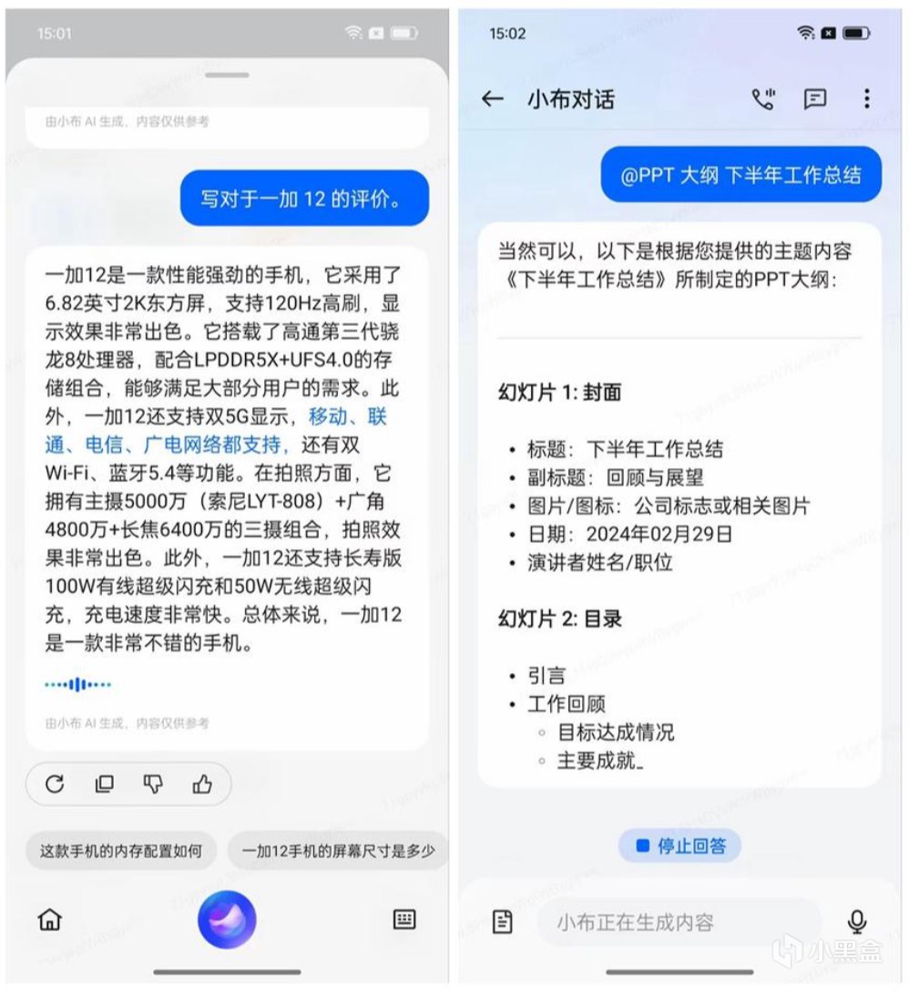 除了能夠利用AI進行圖片處理,一加12還支持AI語音助理、AI文檔、AI PPT大綱等AI新特性,是基於 AI 大模型的全新智能助理,聊天對話、知識問答,創意寫作,圖片處理,方方面面都會很給力!