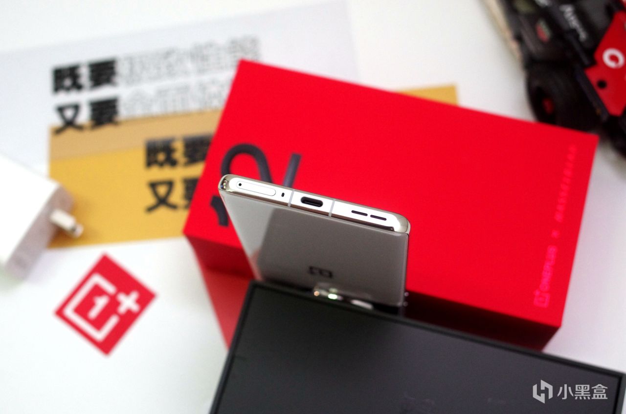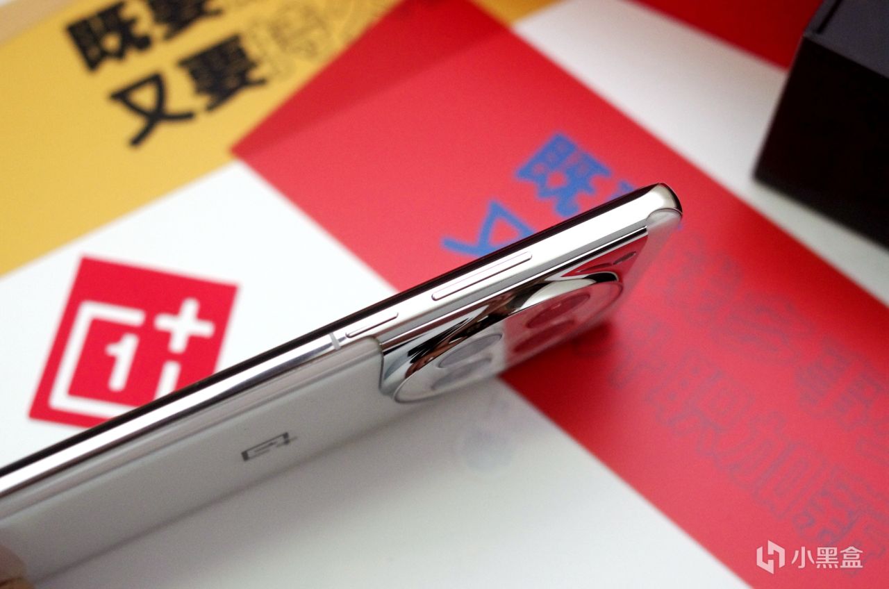 中框部分,一加 12自然是使用了航空級鋁合金中框,亮面高級感十足。精密切削而成的3D曲面,握持起來手感非常舒適,完全沒有硌手的感覺,機身右邊是電源鍵和音量鍵。