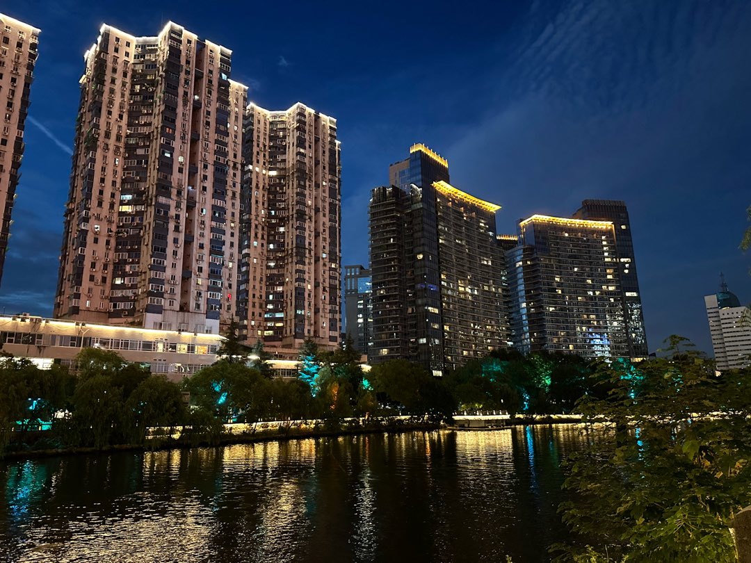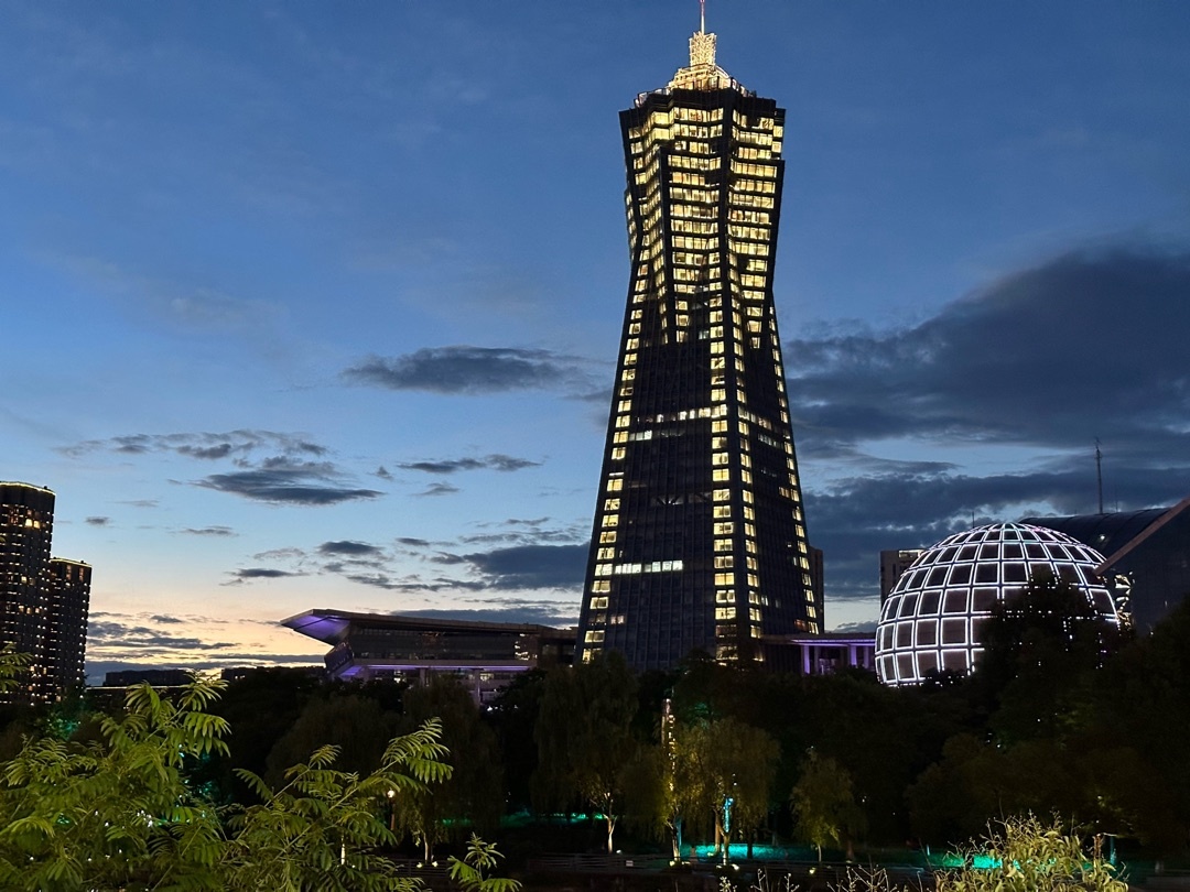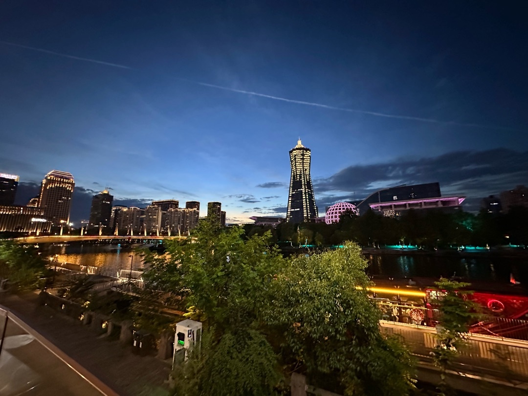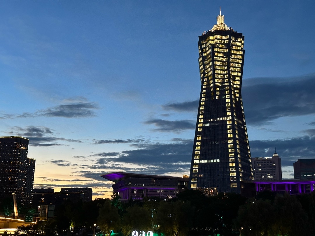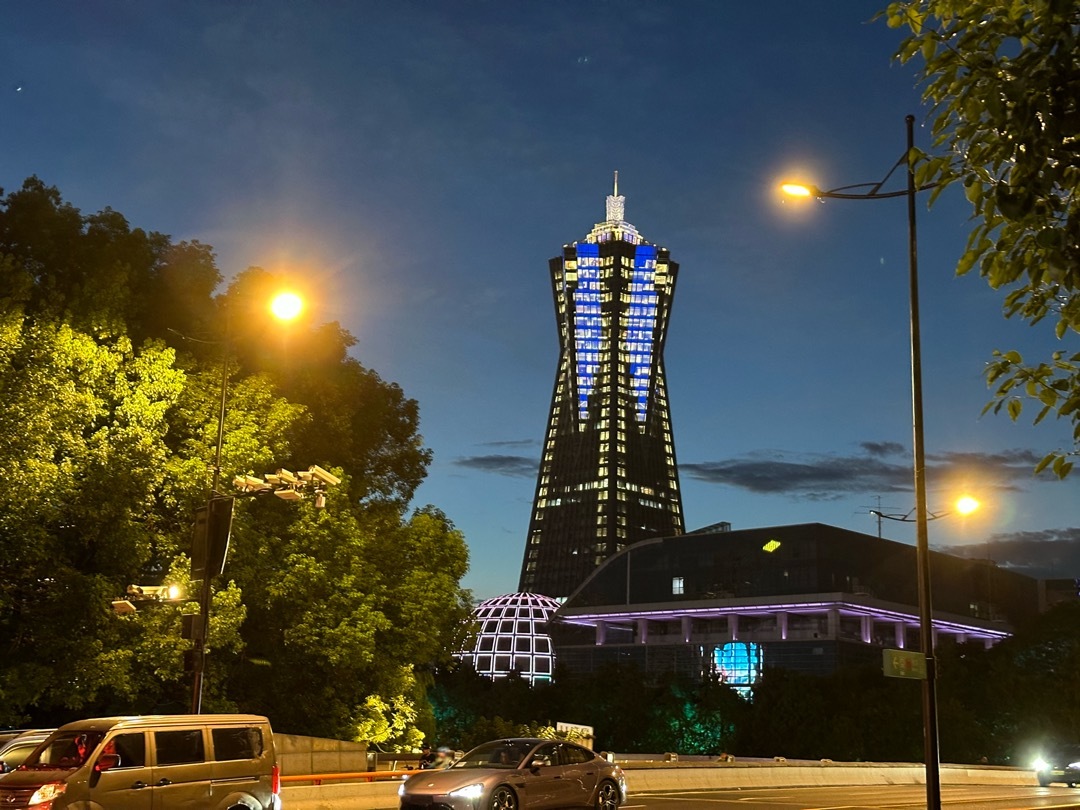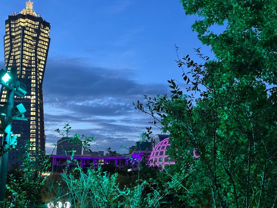 頂部的燈光和天色毫無違和,肉眼看