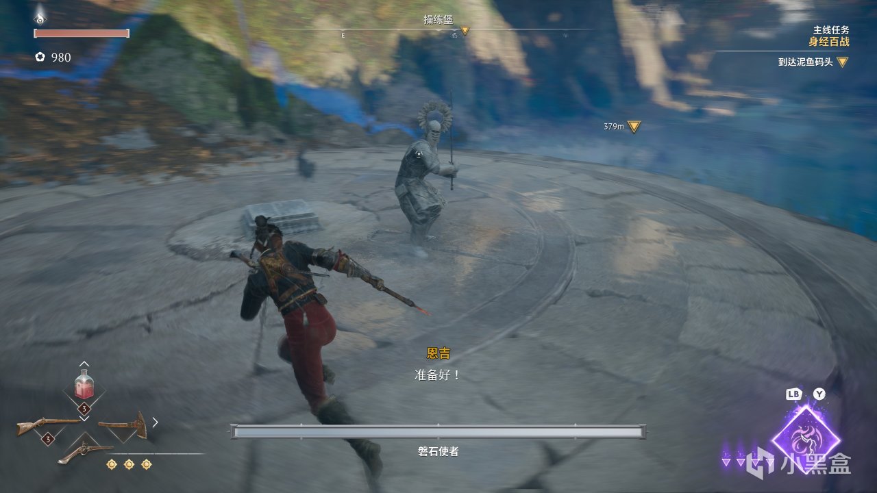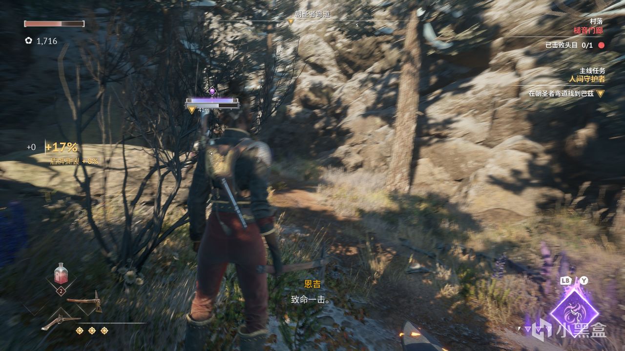 首先,本作的主角一共有三種攻擊方式,近戰普攻由四段連擊的斧子組成,遠程狙擊則由可以爆頭敵人一擊斃命的長槍所主導,而跳出了這些中規中矩設計思路的,是主角在中近距離的一把手槍:在大多數情況下——尤其是Boss戰,無論對方是否正在連招,這把手槍的子彈都能夠直接打斷敵人的攻擊,在我方几乎無後搖的同時使敵人陷入一個短暫的硬直中。