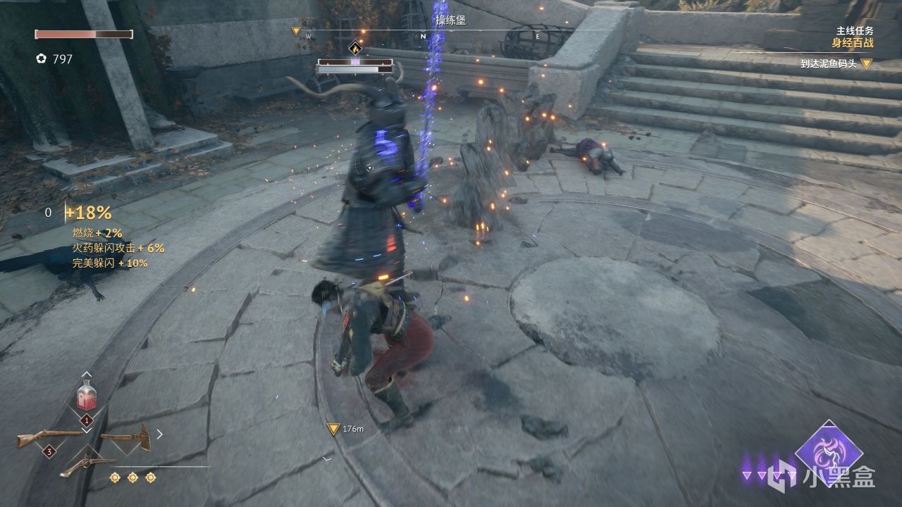 熟悉魂遊的玩家都知道,魂遊的戰鬥設計——尤其是Boss,就像是一場回合制遊戲:Boss起手——玩家閃避——Boss連招後搖——玩家利用行動時間選擇補給或者輸出,這一循環週而復始,相信只狼作爲知名音遊,其玩家對這一戰鬥體驗更是深有領會。而本作中,手槍的存在能夠直接打斷敵人的輸出時間,強行將行動回合從敵方手中奪回,由此,這一立回式戰鬥雙方切換回合的界限被徹底打破。