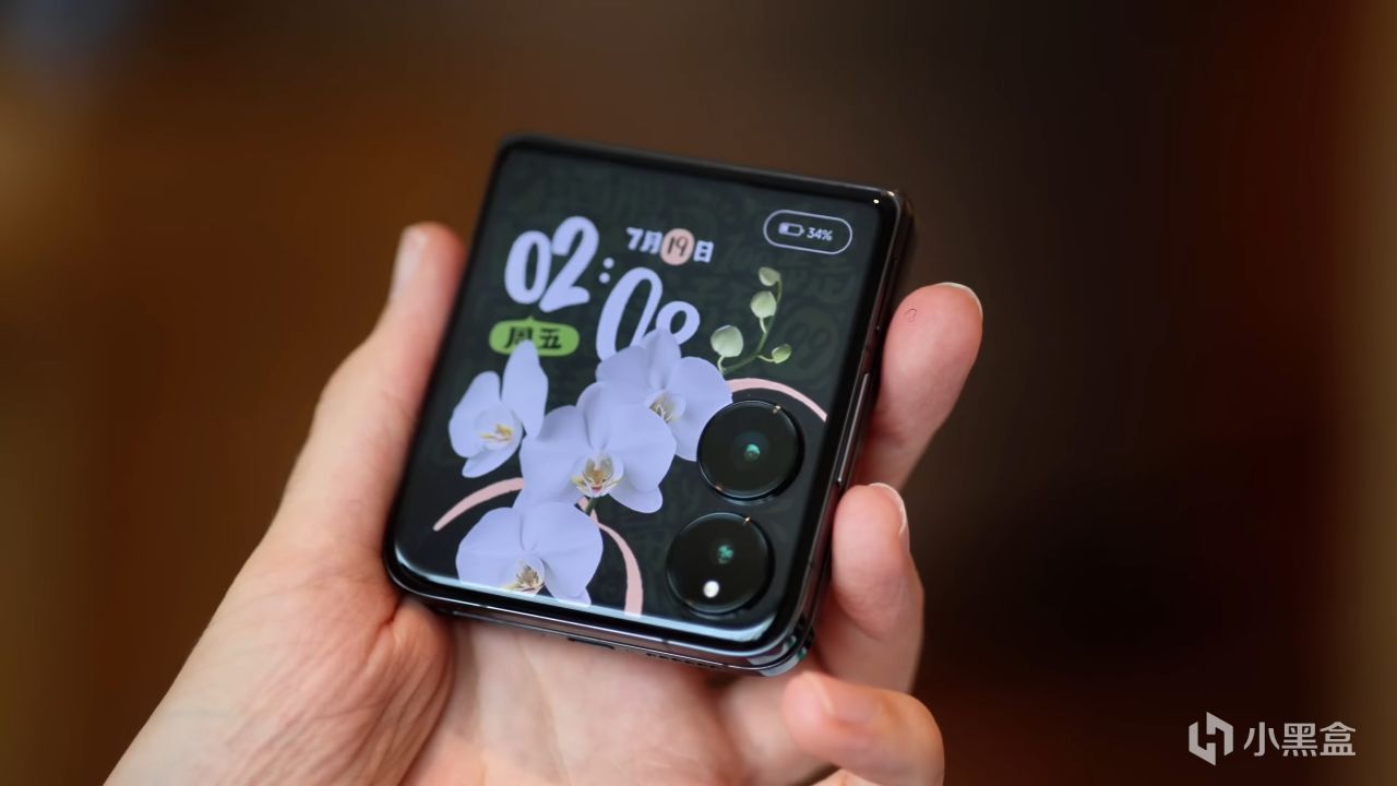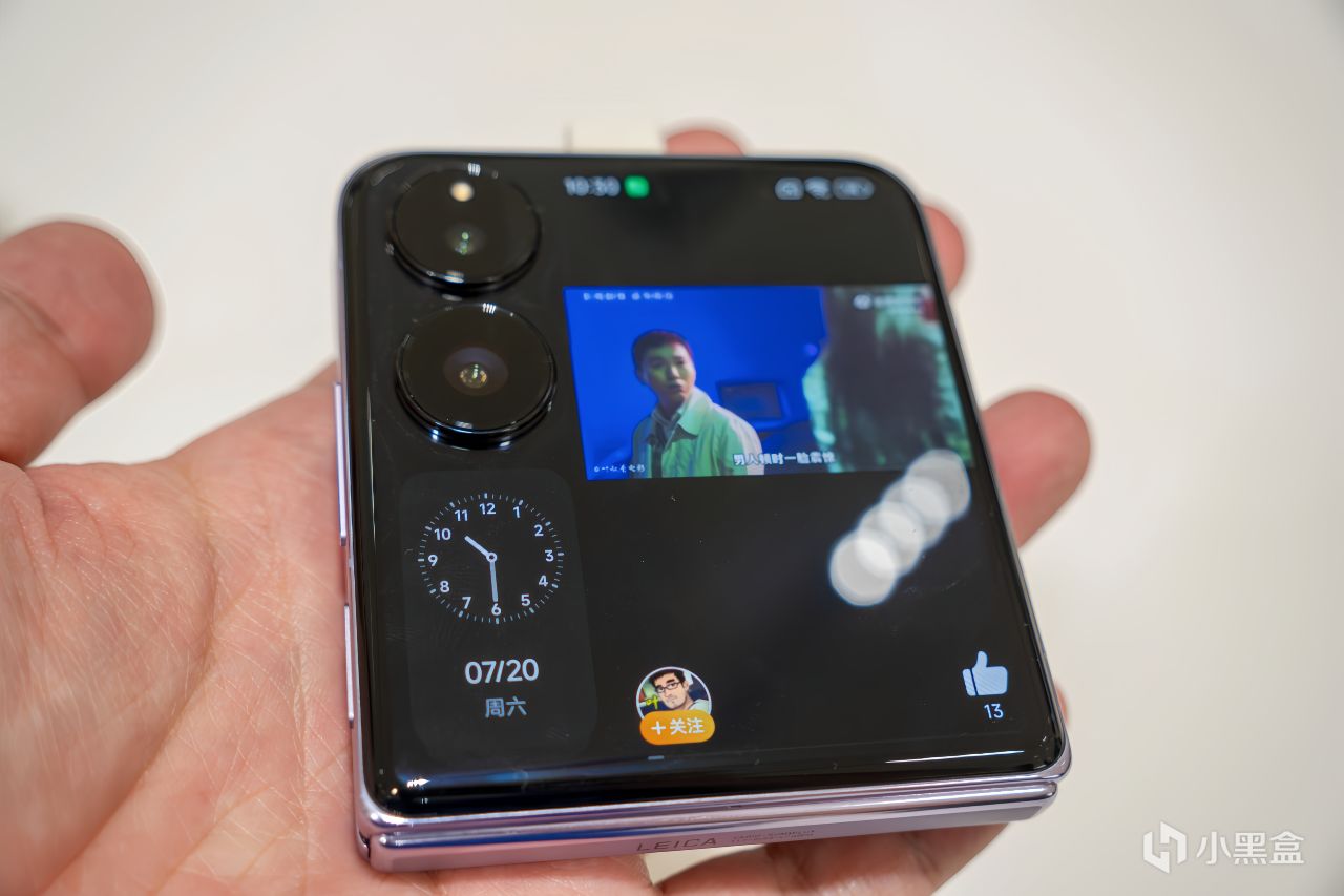之前大摺疊的時候不少產品也就是初期適配了下,之後不少都斷了,你要是APP程序員讓你加班適配不同屏幕大小來敲代碼你肯定也罵罵咧咧的;這次Mix Flip想法可以的,在攝像頭以外的位置形成了16比9的區域,視覺上看着更協調,對於主流的APP適配也更好,不用改來改去的,攝像頭上面的那個區域也搞了個類似藥丸的地方放內容,不過外屏的顯示APP需要內屏增減操作···後續得再優化一下。