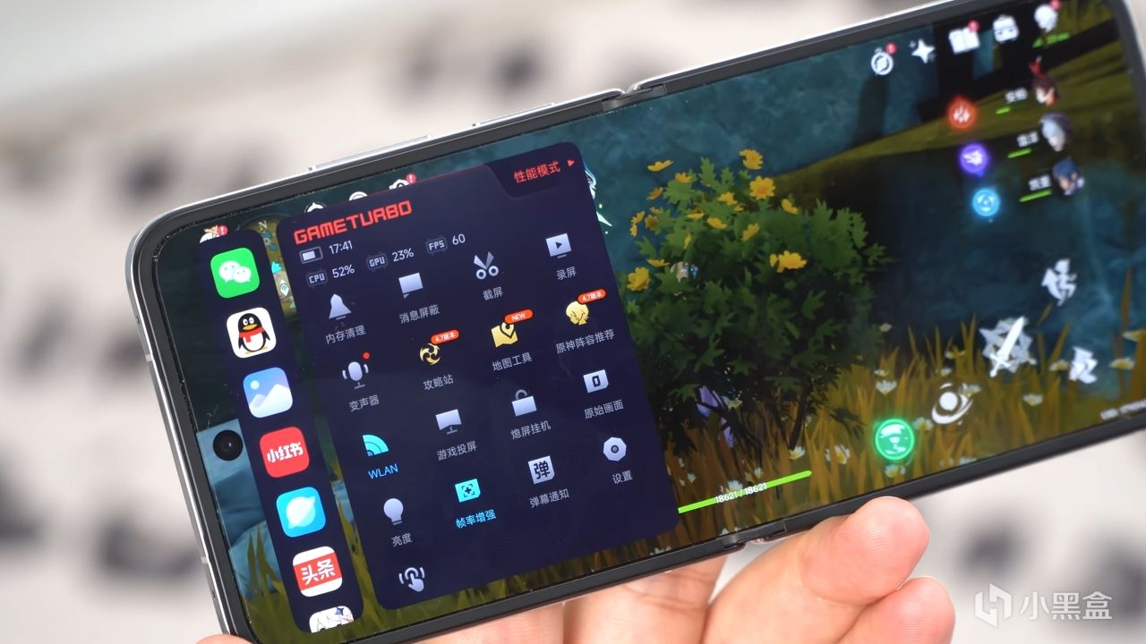 豎屏摺疊我個人覺得用戶會比較少的打遊戲,也簡單測了下,原神直接打開會發現分辨率不夠,設置裏全開後810P,整個過程體驗下來效果一般,十幾分鍾會鎖幀保體驗,如果是680P效果會好不少。