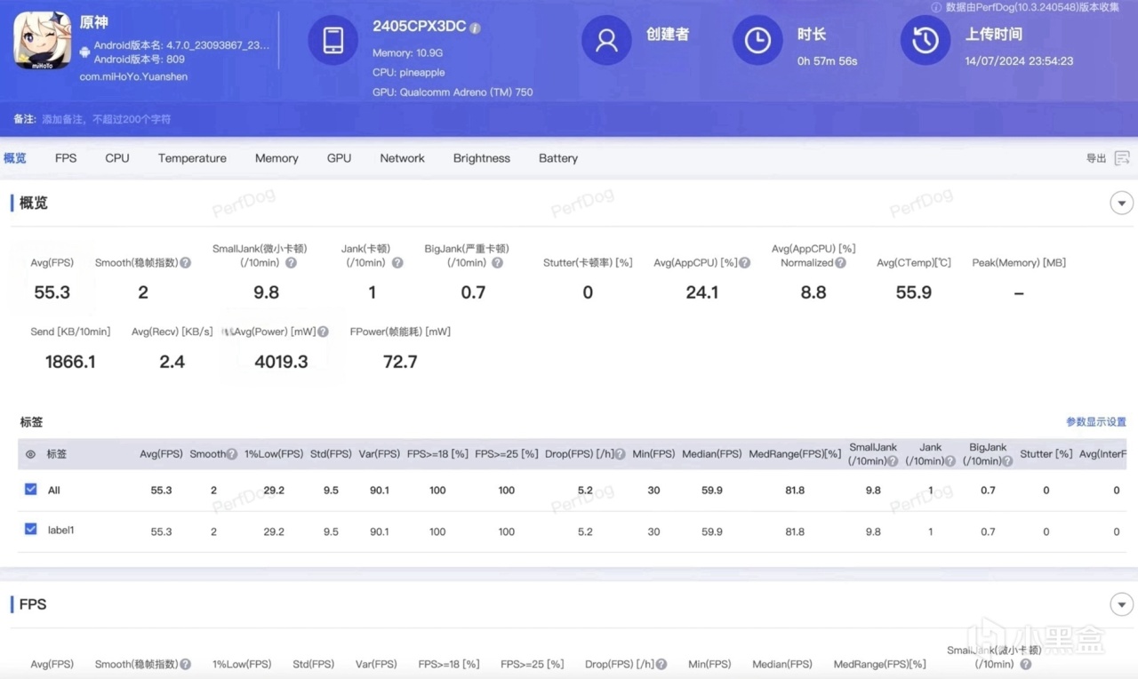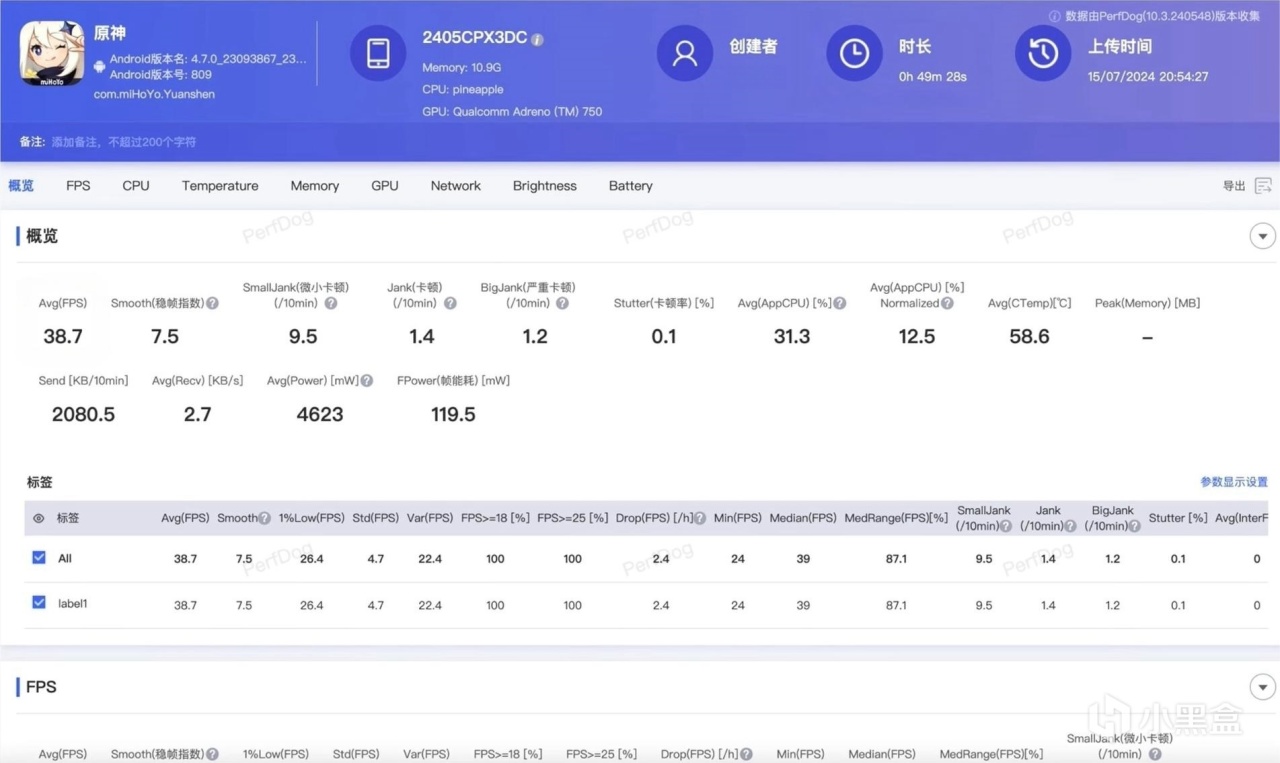 如果通過Game Turbo裏的功能選擇幀率增強,體驗會好不少,不過溫度上受限與豎屏的摺疊散熱很一般,溫度都集中在上半部了。