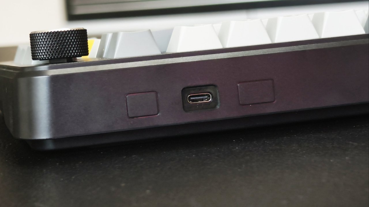 鍵盤頂部你可以看到是有一個TYPE—C口的,給大家進行有線連接。兩側本身各自有一個開槽,但那應該是給三模版本用的,只是爲了節省成本,使用同一個模具罷了