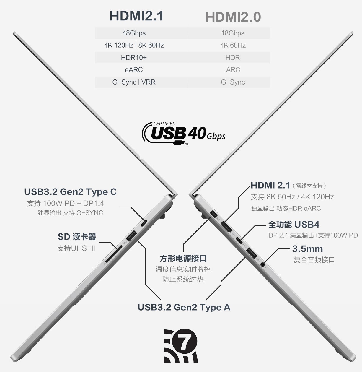 接口:USB 4+SD讀卡器+HDMI 2.1+2× USB-A+Type-C