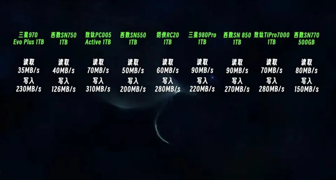 其實啊我們日常使用電腦的大多數場景考察的都是固態硬盤4K隨機讀寫功能。第一行的數值爲連續讀寫1兆一線程8隊列,這也是大部分廠家用於宣傳的順序讀寫速度,而第三行和第四行則是隨機讀寫4kb1線程32隊列和1隊列,我們日常使用傳輸密集的小文件實際考驗的就是這兩行的數據吞吐能力,所以這就是買固態的第一個坑,不要只看順序讀寫的傳輸速度,要看隨機讀寫的速度,哪怕是順序讀寫呢一些廠家也只會宣傳最大值,具體啊還是要去網上搜索你所購買的這款硬盤的相關資料,得出一個順序和隨機讀寫速度的平均值 再結合自身需求呢看看是否需要購買,這裏小編幫你總結了部分固態硬盤的實際測出的平均4K隨機讀寫速度。