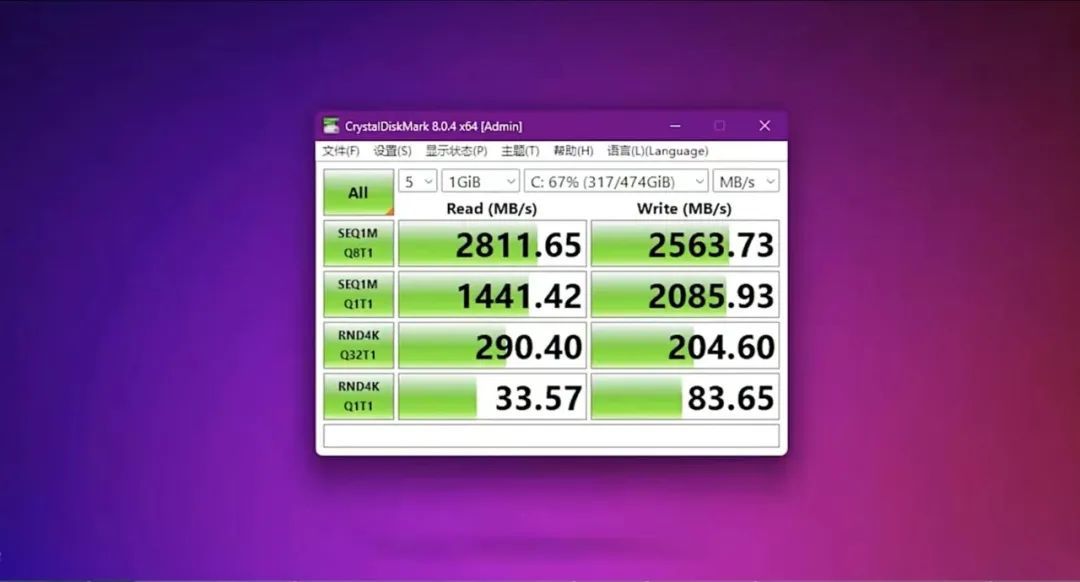 明明廠家宣傳的讀寫速度是接近7500兆每秒,但我們通過Crystal Disk Mark磁盤檢測工具檢測硬盤的順序和隨機讀寫速度,發現其實並沒有那麼高。