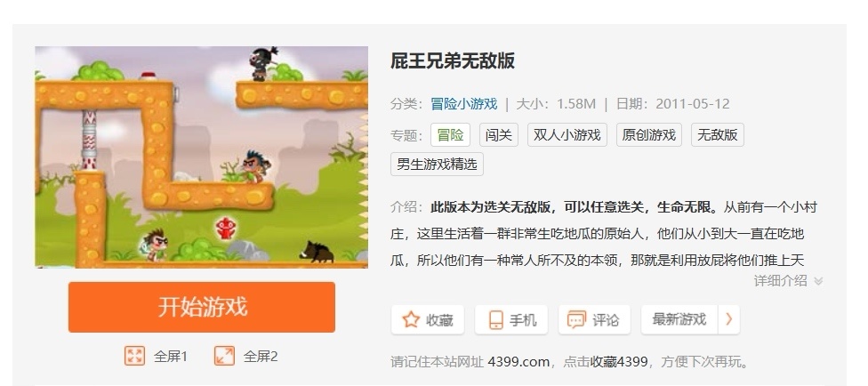 《屁王兄弟》是一款雙人合作的冒險遊戲,玩家控制角色使用放屁技能來跳躍和攻擊。遊戲包含多個關卡,每個關卡都有障礙和敵人。目標是完成任務,同時收集金幣來升級角色。這款遊戲以其簡單操作和幽默風格受到玩家喜愛。
