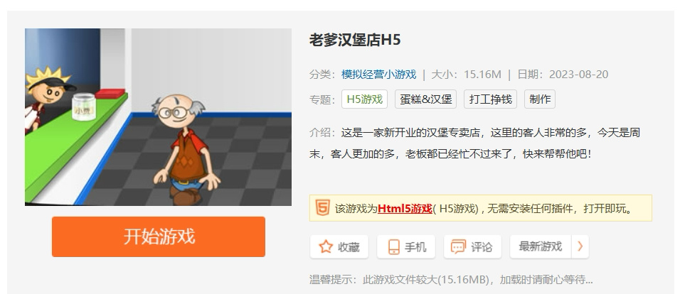 《老爹漢堡店》是一款經營模擬遊戲,玩家需要根據顧客的訂單製作漢堡。遊戲有多樣的菜單選擇,玩家可以通過賺取的金錢升級店鋪。目標是讓顧客滿意併成功經營漢堡店。