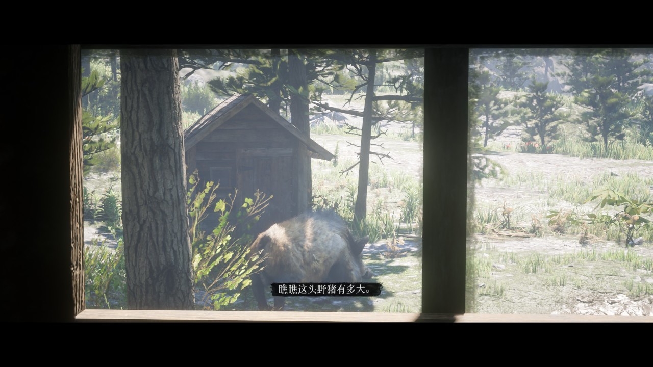 再睡24個小時間隔以後去小木屋,這次是狩獵一隻野豬,結果老兵不幸被野豬從山上撞下來,最後就是名場面,老兵託亞瑟照顧好布埃爾--象牙白金色荷蘭溫血馬。這野豬是真的皮糙肉厚,只有額頭可以打死它。