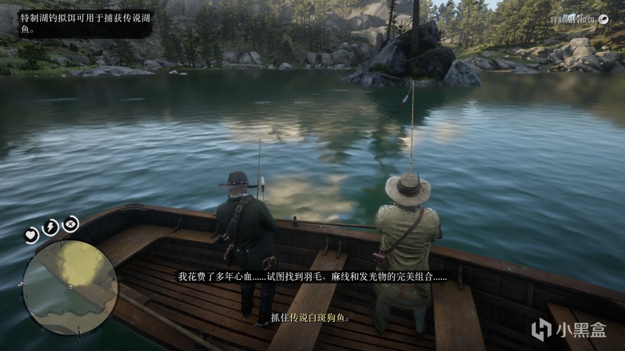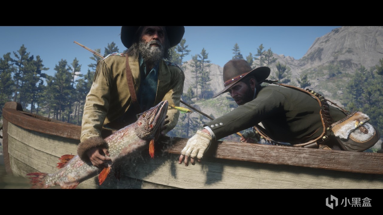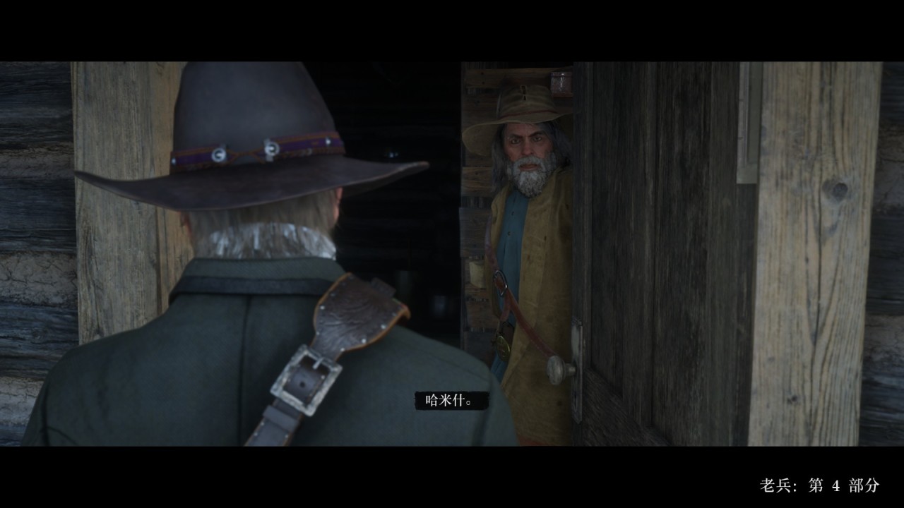 老兵在第一部分結束的時候會告訴你他的家在湖邊的一個小木屋裏面,接下來三個部分都是在小木屋觸發的。第二部分的時候老兵會讓亞瑟跟他一起去釣魚,釣一條傳說白斑狗魚。然後老兵被狗魚拉下水去了哈哈哈,把機會讓給了亞瑟。