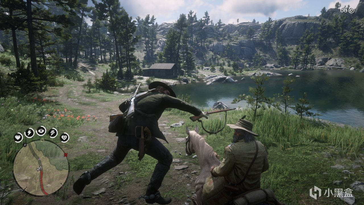 🌹第二步:來到這個地方會遇到一個叫做老兵的老男人(第一部分還不知道名字),他的假腿被我們的主角荷蘭溫血馬布埃爾帶走了,卡在了馬鞍上面,然後需要我們幫助他去河邊把布埃爾帶回來,我們亞瑟作爲大好人一個,那肯定幫他對吧。(這裏正常做任務,一直到完成任務)