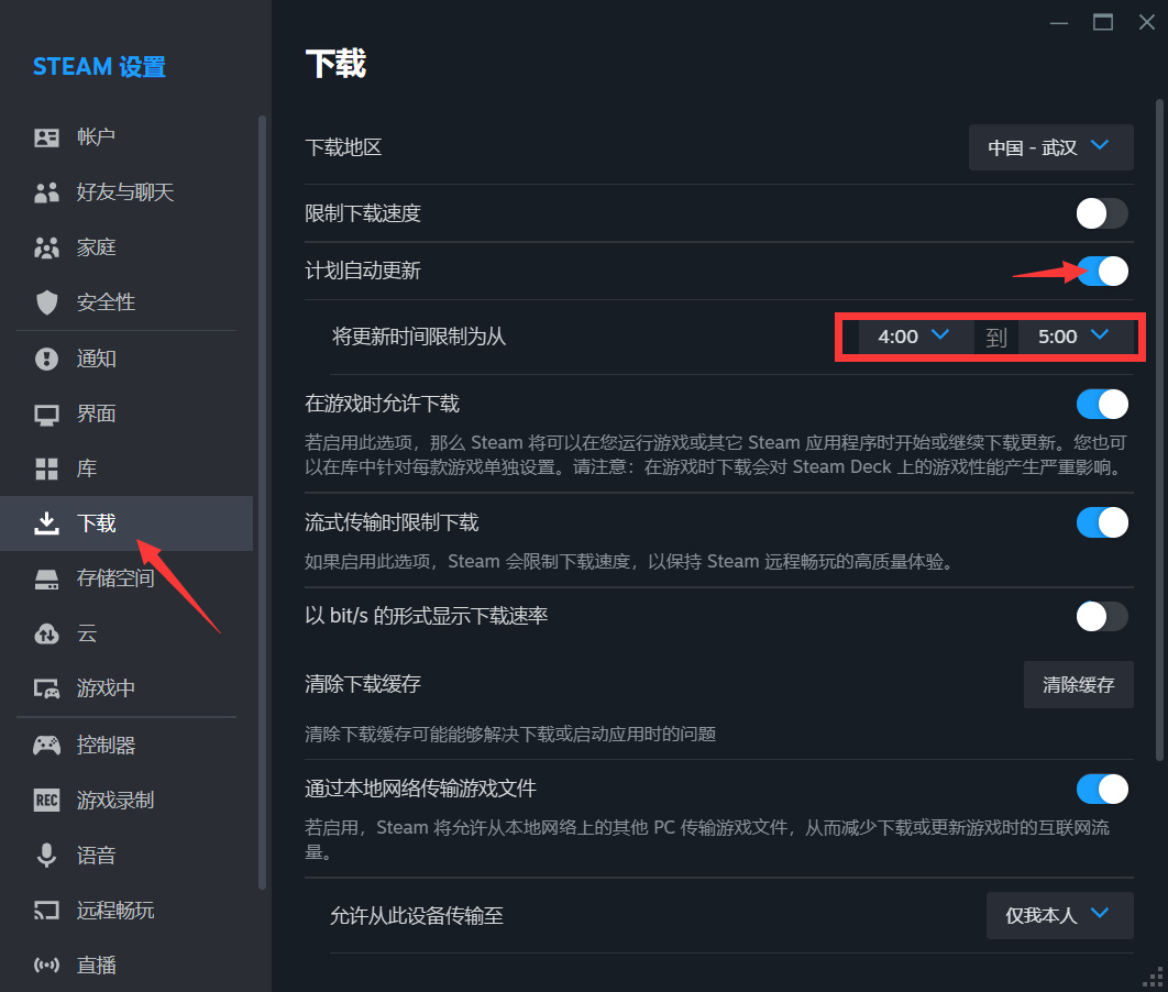 修改計劃自動更新時間,改爲不會開着電腦或者steam的時間,比如凌晨四點到五點