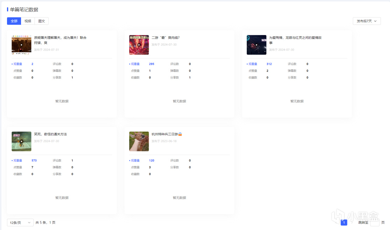 小紅書數據,其中殺機視頻因爲違規沒過審