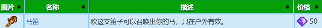 右鍵使用,吹響一小段音樂後,你的馬就會傳送到你的面前(前提是你造了馬廄,還要給你的馬取名),只能在戶外使用,在屋子裏、礦井、骷髏洞穴、火山洞穴這些地方都用不了,個人感覺用處不大,我是因爲寫這篇文章纔去換的,在此之前是一直沒換,因爲在我本人在後期用的比較多的是雙加速buff➕傳送,這個馬笛基本就屬於齊鑽不多時不會去考慮它,齊鑽多的時候又感覺用不上了,而且馬笛還佔揹包一格子