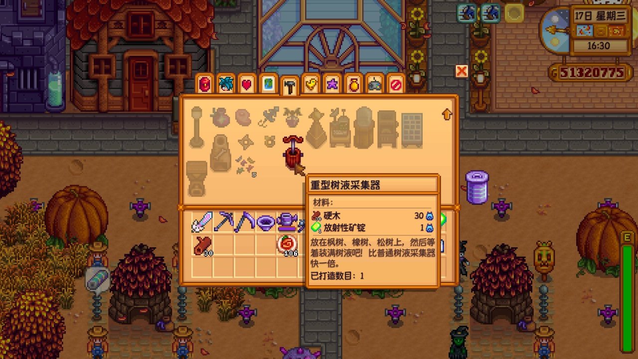 這個兌換的是重型樹液採集器的製作配方,製作重型樹液採集器需要耗費30硬木➕1放射性礦錠