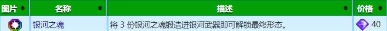 銀河之魂是用來鍛造銀河武器,使其變成無限武器的,到姜島火山十層的鍛造臺,花費20個火山晶石➕1個銀河之魂即可鍛造一次,鍛造第三次就能獲得無限武器,即共計60個火山晶石➕3個銀河之魂,無限武器的攻擊力會比銀河武器高,是遊戲中的最終武器(除了附魔龍牙棒),而且首次鍛造出無限武器你還能解鎖一個遊戲成就“無限力量”