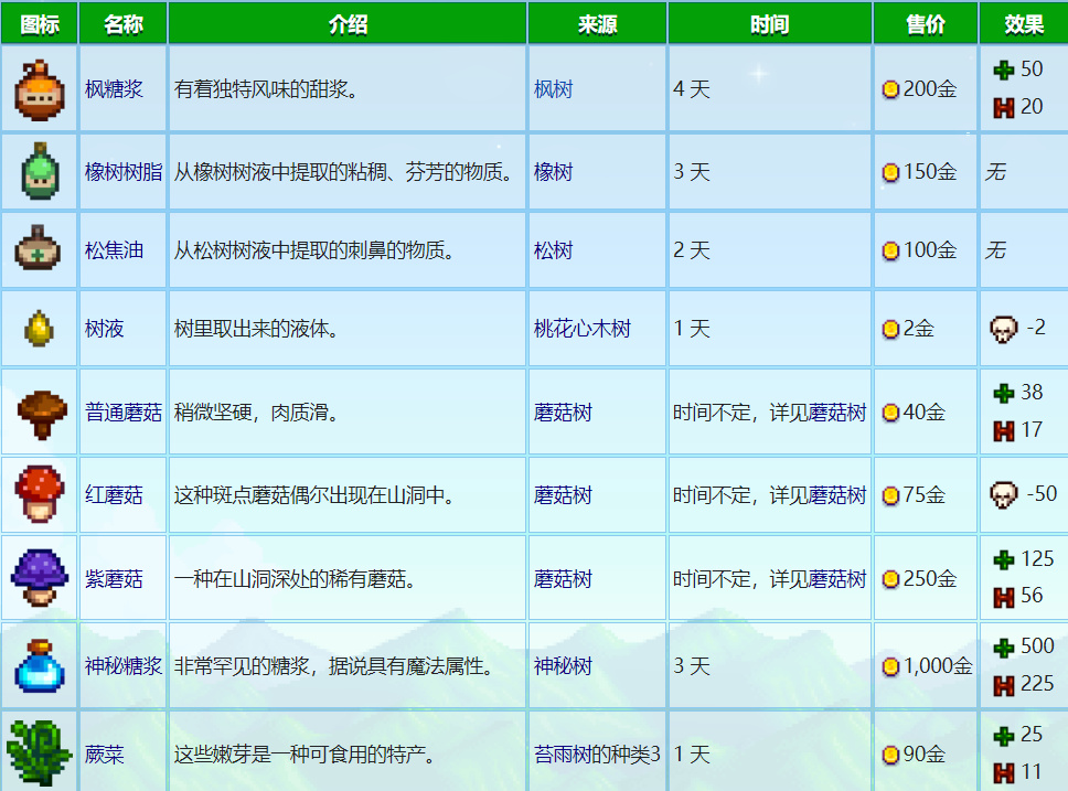 重型樹液採集器的產出速度比普通樹液採集器快一倍,下圖爲重型樹液採集器產出時間的參考