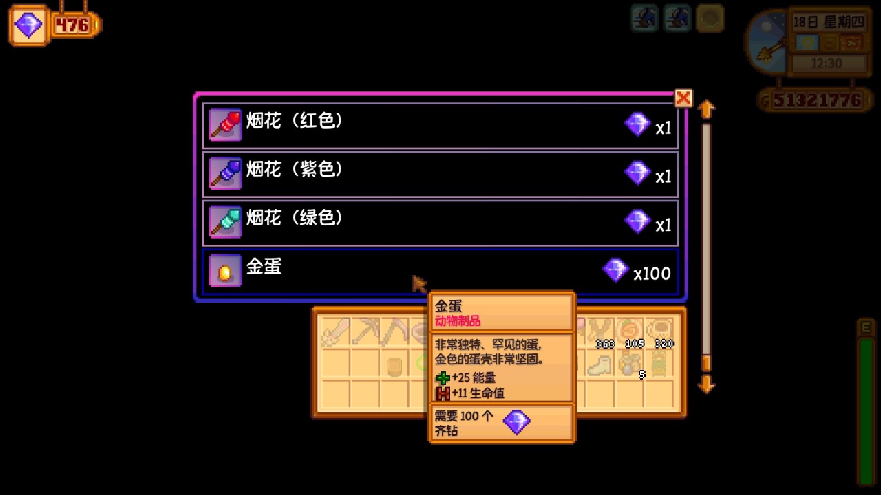 我們可以看到,金蛋的售出價格最貴就是銥星金蛋1200金,產出高收入也高,不過都100%完美度也不會缺錢了,這個金蛋更多是給你作紀念的,換一顆放雞舍裏吧