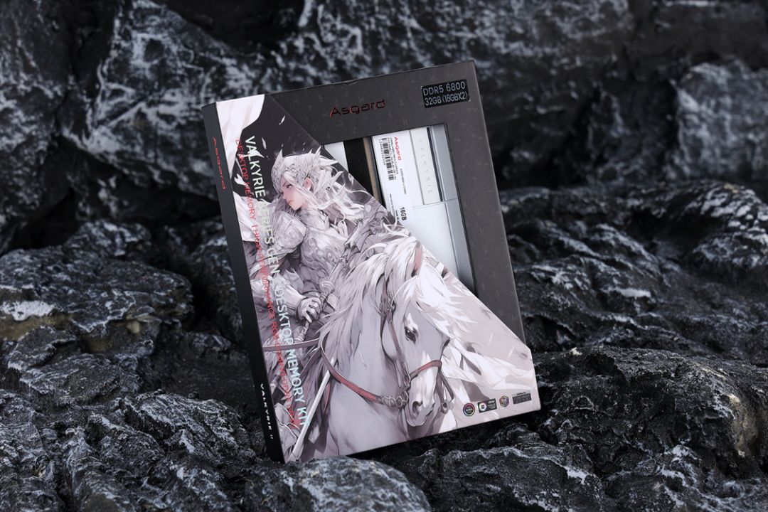 全新一代的女武神內存採用的是精緻的禮盒式包裝,包裝正面這女武神銀槍白馬形態的人物立繪,真的好颯。一側內盒透明開窗,內存本體也有種猶抱琵琶半遮面的感覺。