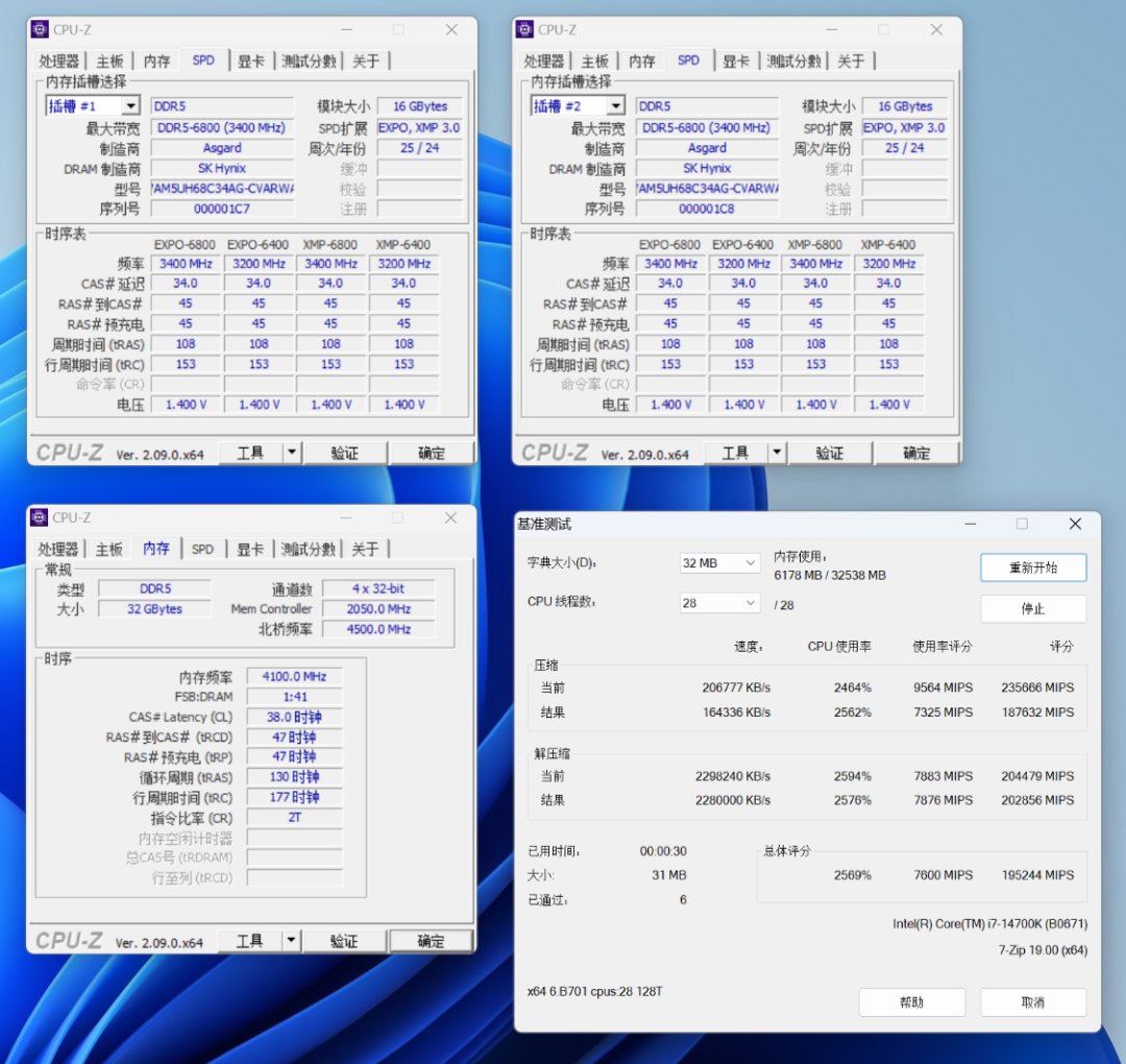 繼續將內存OC至8200MHz C38,並在Memory Extension Mode中選擇Benchmark Mode,多線程解壓縮評分可以達到195244 MIPS,單線程解壓縮評分可以達到10199 MIPS;