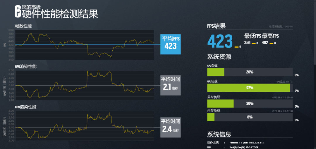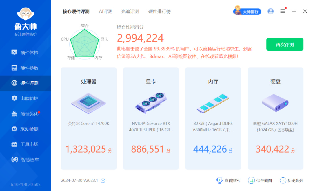 完整測試平臺配置:i7-14700K處理器、微星 Z790 MPOWER主板、影馳RTX 4070Ti Super 星曜OC顯卡、阿斯加特女武神II 6800MHz 16G*2內存、影馳星曜7000Plus 1T M.2固態硬盤、骨伽小乘風MX600 Mini 黑色機箱、超頻三DA360 Pro ARGB WH白色一體式水冷、影馳電競大師 GL850 ATX 3.1 金牌全模組電源、影馳夢境Pro 黑色風扇*5(4反 + 1正)…