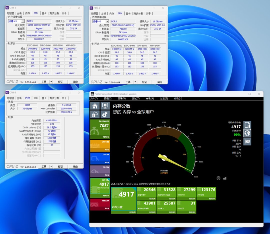 繼續將內存OC至8200MHz C38,並在Memory Extension Mode中選擇Benchmark Mode,內存得分4917分;
