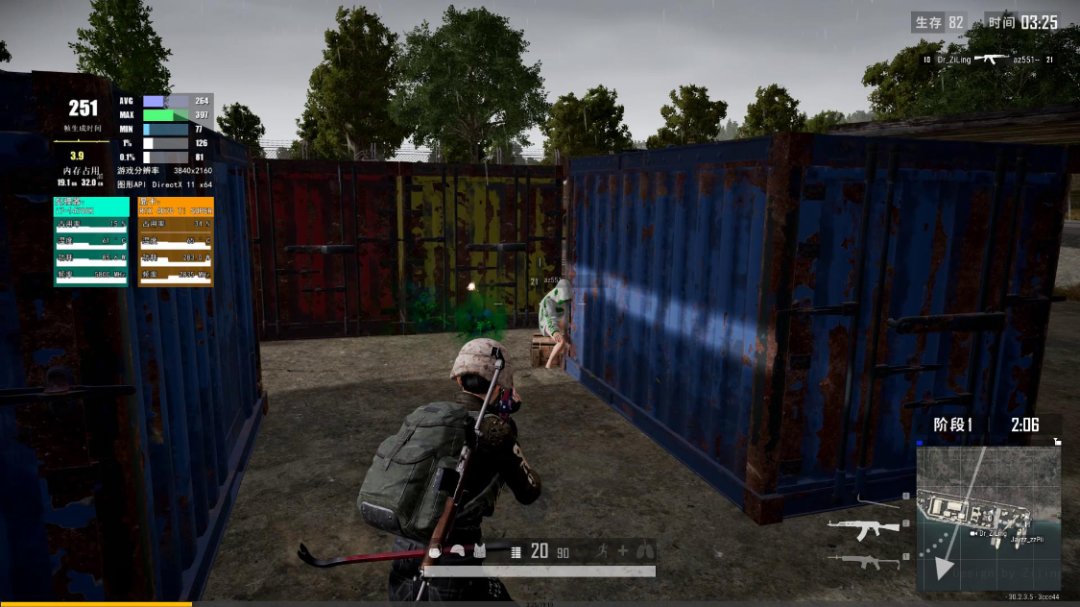 《PUBG·絕地求生》實際遊玩體驗,三極致畫質,100% 渲染比例,圖形API爲DX11,內存XMP至6800MHz時,4K分辨率下,遊戲實際幀率爲210 FPS左右,大部分時間都保持在240 FPS以上。保持畫質不變,1080P分辨率下,遊戲實際幀率爲280 FPS左右,大部分時間都保持在320 FPS以上;