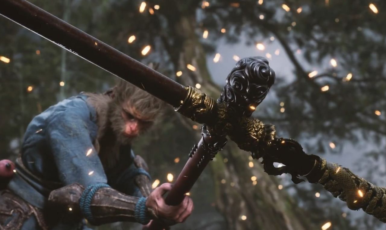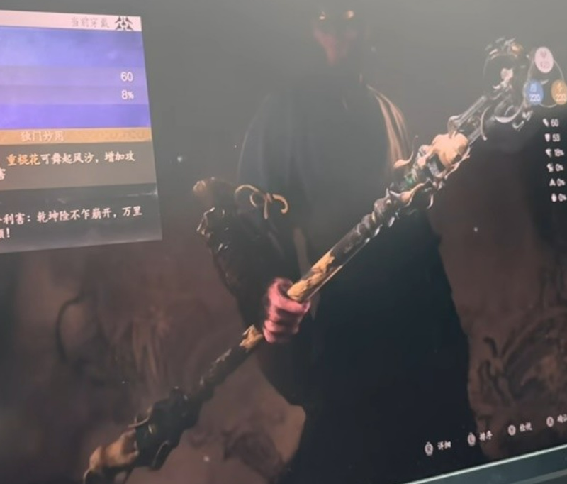2022英偉達實機試玩中中天命人擊敗黑風山隱藏妖王赤髯龍後獲得的武器。